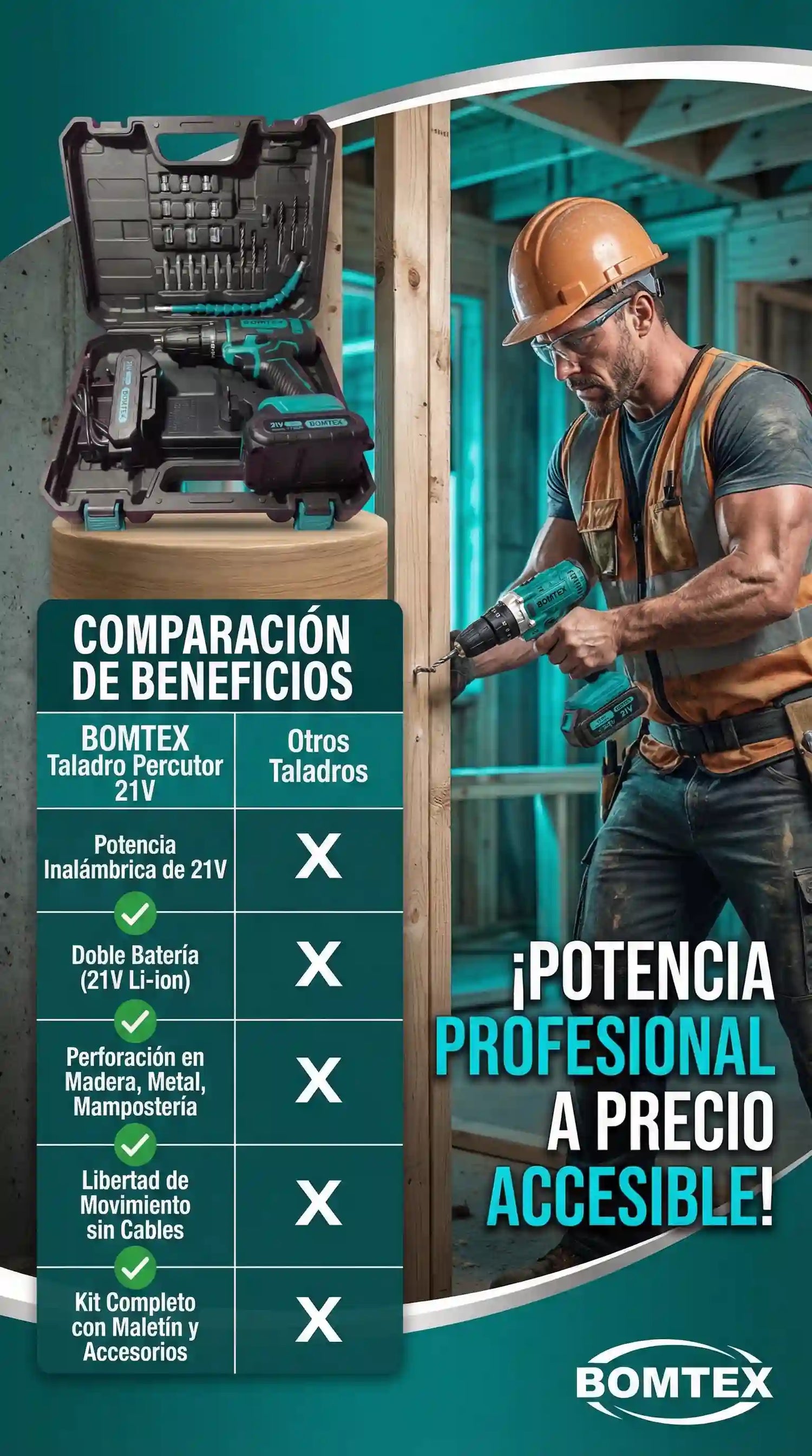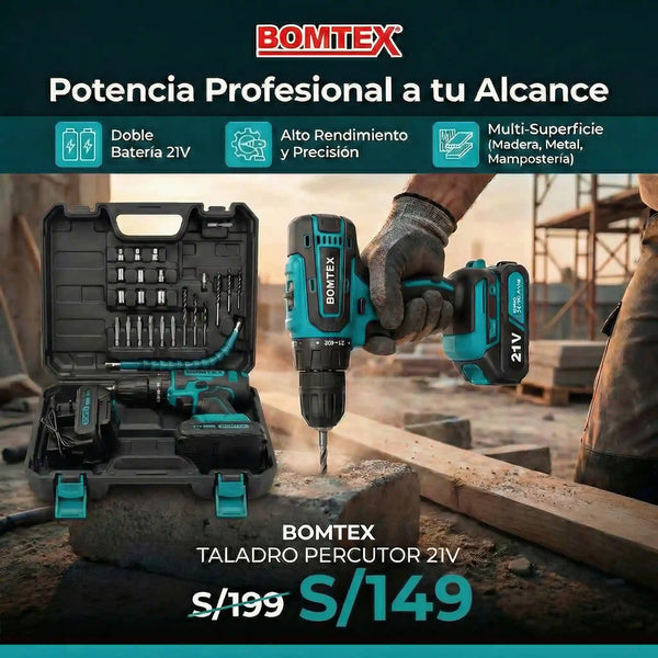 Taladro Percutor 21V + Accesorios BOMTEX